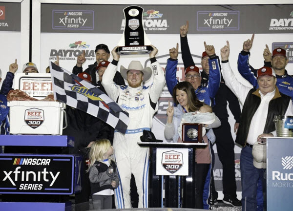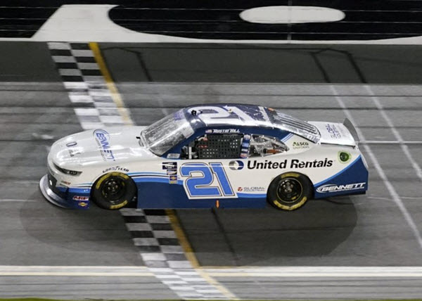 W212265BENAUA. This raced version diecast reflects Austin Hill's #21 Bennett Transport / United Rentals Camaro as it sat in Victory Lane following the Beef for Dinner 300 NASCAR Xfinity Series race at Daytona International Speedway on Saturday February 19, 2022. Hill started the race in 2nd position and led 23 laps, including the final lap of the race to earn the victory for Richard Childress Racing.