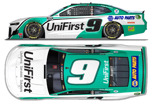 CX92022UFCLASCL. Chase Elliott drove this #9 UniFirst All Star paint scheme for Hendrick Motorsports in the NASCAR Cup Series All-Star race at Bristol Motor Speedway on Wednesday July 15, 2020. Elliott started the race in 13th position and led 60 laps, including the final 31 laps of the race to earn the victory and the $1 million purse.