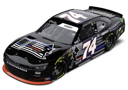 N742123HONBHAUT. Bayley Currey drove this #74 Running 4 Heroes paint scheme for Mike Harmon Racing in the Beef Its What's for Dinner 300 NASCAR Xfinity Series race at Daytona International Speedway on Saturday February 13, 2021. Currey started the race in 30th position, but was involved in the crash on lap 74, and finished 33rd.