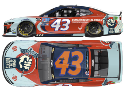 C432122PTPER. Erik Jones drove this #43 Power to the Patients paint scheme for Richard Petty Motorsports in the Bank of America Roval 400 NASCAR Cup Series race at the Charlotte Motor Speedway Road Course on Sunday October 10, 2021. Jones started the race in 17th position and finished 17th.