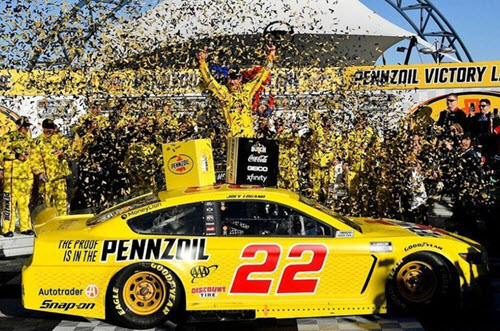 W222022PZJLCCL. This diecast reflects Joey Logano's #22 Pennzoil Ford Mustang as it sat in Victory Lane Following the Pennzoil 400 NASCAR Cup Series race at Las Vegas Motor Speedway on Sunday February 23, 2020. Logano started race in 5th position and led 54 laps, including the final five laps of the race to earn the victory for Penske Racing.