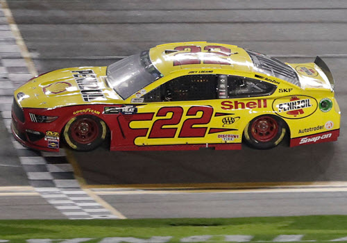 W221922SHJLBDLQ. This raced version diecast reflects the #22 Shell Pennzoil Ford that Joey Logano drove into Victory Lane following the Gander RV Daytona Duel #2 at Daytona International Speedway on Thursday February 14, 2019. Logano started the race in 3rd position and passed Clint Bowyer on the final lap to earn the victory for Penske Racing.