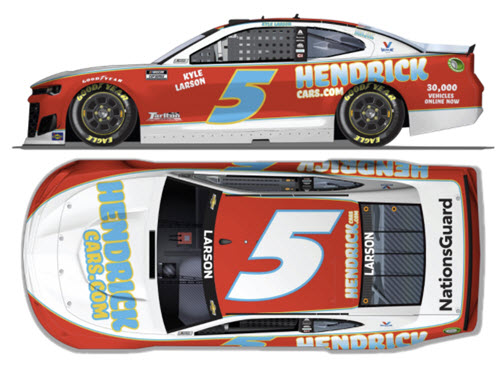 CX52123HNDKLCLA. Kyle Larson drove this #5 HendrickCars.com Darlington Throwback paint scheme for Hendrick Motorsports in the Goodyear 400 NASCAR Cup Series race at Darlington Raceway on Sunday May 9, 2021. Larson started the race in 14th position and finished 2nd.