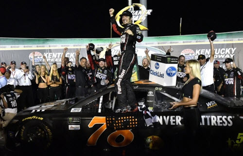 This paint scheme reflects Truex' car as it sat in Victory Lane at the Quaker State 400 on Saturday night July 8, 2017 at Kentucky Speedway. Truex started in 2nd position and dominated the race, leading 152 laps. With Truex leading the race by a half-lap, a caution flag came out with 2 laps to go. Nonetheless, Truex sprinted into the lead on the overtime restart, and took the checkered flag shortly thereafter. It was his 3rd win of the 2017 season, and the 10th Cup Series win of his carreer.