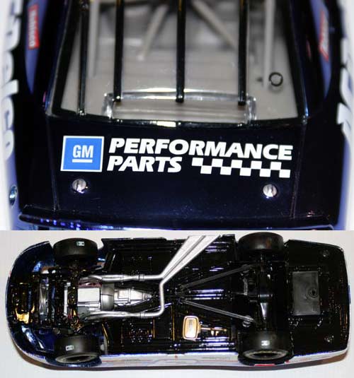 This 1999 Dale Jr. standard ARC CWB Prototype is guaranteed to be authentic. RCCA prototype banks are identified by a "0000" in the rear window. However, this car has nothing in the rear window. Therefore, it is obvious that this is not a RCCA Club Car Bank. Well, could it be just a standard ARC CWB? No. The only standard ARC bank that Action made in 1999 with the Last Lap paint scheme has BLACK windows. What about the SelectNet bank? It has clear windows. Yes, it does. But, as you know, the SelectNet banks all come with GRAY chassis. As you can see in the photo below, this CWB has a black chassis. Again, the authenticity of this car is guaranteed. We sent this car's sister (a 1999 Bud standard ARC CWB without chassis numbers) down to Action in Phoenix to verify that it was indeed a prototype; They confirmed that it was indeed authentic.