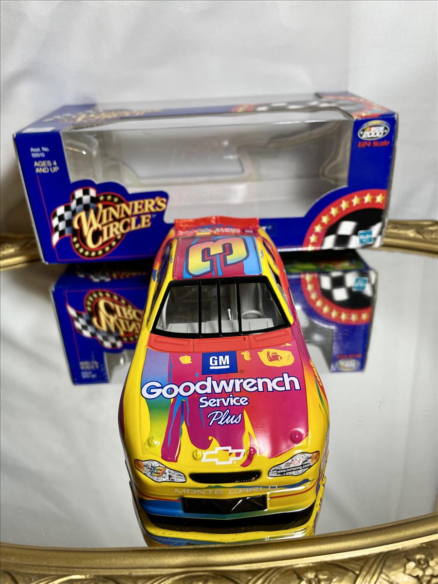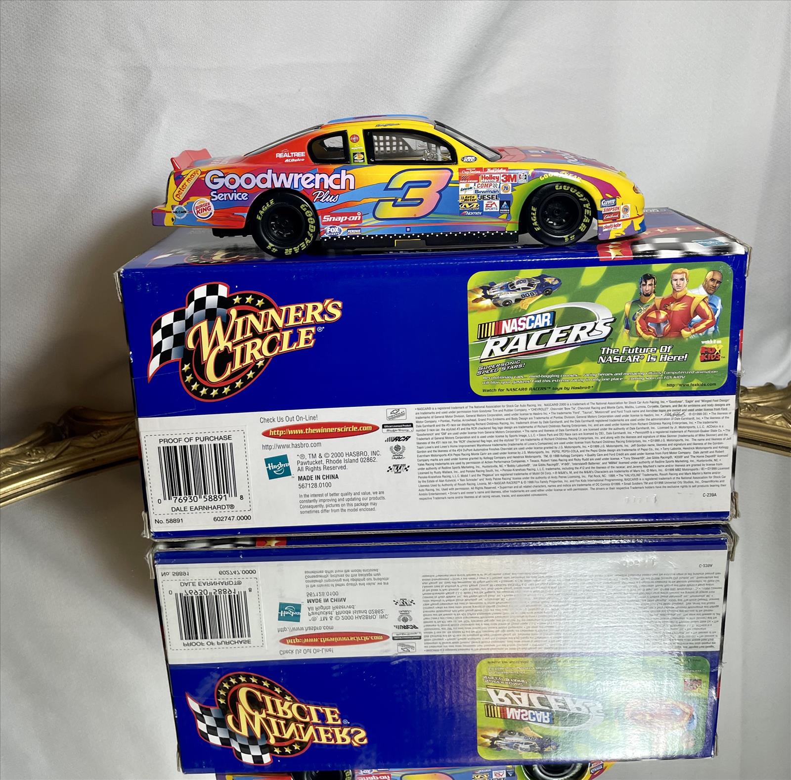 Dale Earnhardt Sr drove this iconic Peter Max paint scheme (designed by artist Peter Max) in the Winston All Star race at Lowe's Motor Speedway on Saturday May 20, 2000. Earnhardt Sr started the race in 12th position, and finished 3rd. His son, Dale Jr, started the race in 5th position, and led only two laps, but those were the final two laps of the race to earn the victory in his Budweiser Chevrolet.