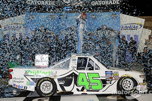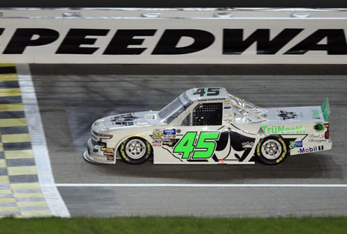 W451965PJRZW. This raced version diecast reflects Ross Chastain's #45 TruNorth Paul Jr Designs truck as it sat in Victory Lane following the Digital Ally 250 Gander Outdoor Turck Series race at Kansas Speedway on Friday May 10, 2019. Chastain started the race in 6th position and led only five laps, but that included the final three laps of the race to give team owner Al Niece his first truck series win.