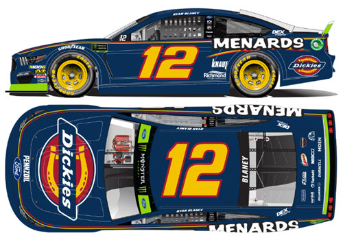 C121923DCRBCLA. Ryan Blaney drove this #12 Dickies paint scheme for Penske Racing in the Hollywood Casino 400 2019 NASCAR Monster Energy Cup Series race at Kansas Speedway on Sunday October 20, 2019. Blaney started the race in 3rd position, led two laps, and finished 21st (last car on the lead lap).
