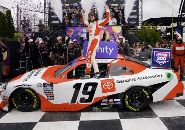 W192365TOYRYN. This raced version diecast reflects Ryan Truex' #19 Toyota Accessories Supra as it sat in Victory Lane following the A-Game 200 NASCAR Xfinity Series race at Dover Motor Speedway on Saturday April 29, 2023. Truex started the race in 12th position and led a race-high 124 laps, including the final 11 laps of the race to earn the victory for Joe Gibbs Racing.
